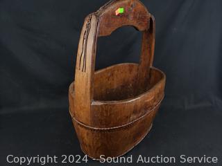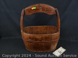 20" H x 16" x 9.5". Olde patina, wire accents.
