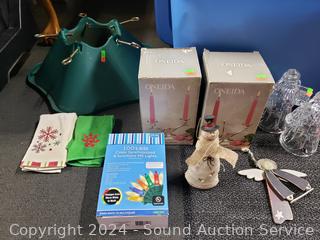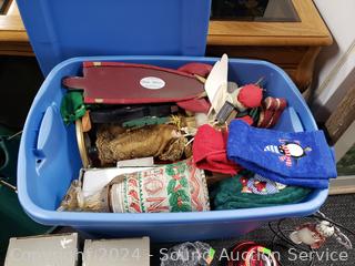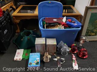 Tote Full of misc. decor & tree stand. Refer to photos for lot contents.