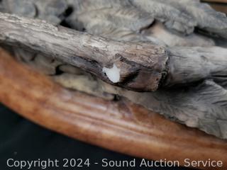 Made from a sculpted resin material. Approx. 23" x 19". Small chip where branch meets the left side, don't see any other issues.