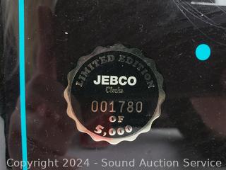 Clock not working, had a super corroded battery in it, 23" x 11", Jebco limited #001780. 23" x 15.5" x 4.5" display. Has some issues, picture has fallen free from matting, held on by blue painters tape, some scuffs on frame.