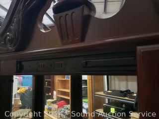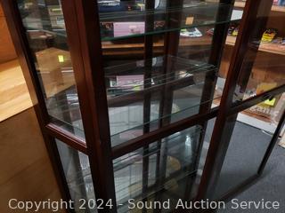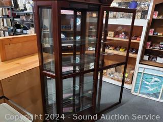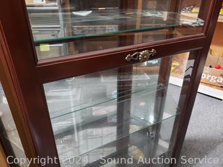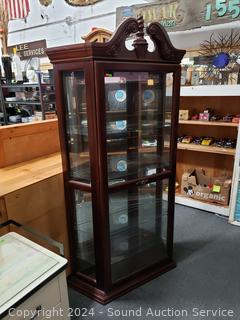 Lot #0023: Dark Cherry Finish Lighted Mirrored Curio Cabinet