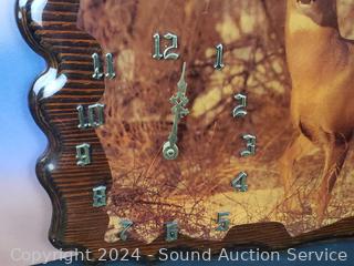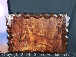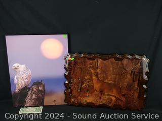 Lot #0080: Deer Plaque Clock (works) & Giclee Owl Print