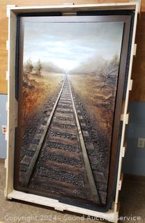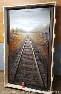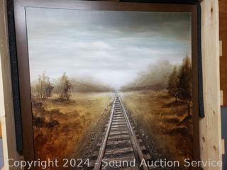 Lot #0016K: Large Original Signed Train Track Oil Painting