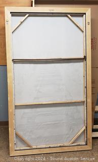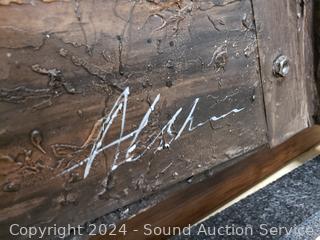 Comes packaged in a wood crate, 75" x 47" x 8.5", painting is 40.75" x 69.5" with frame, 36.5" x 64.25" without frame. Unable to make out signature, Aleshia? Came from a very nice home, and extremely well packaged. It looks like the Yosemite "Vanishing Into the Distance" artwork. Has a scratch on the bottom right of the frame.