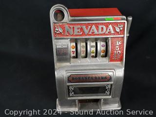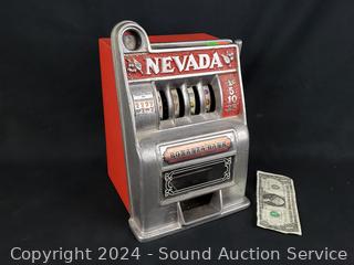 Lot #0204: Nevada Cast Metal Slot Machine Coin Bank