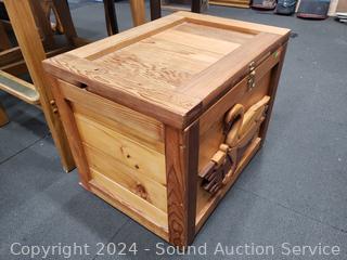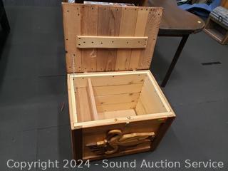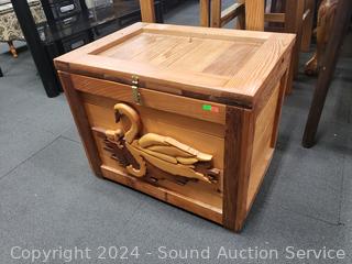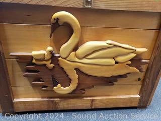 Lot #0034: Nice Handcrafted Wood Chest w/Woodart Geese Accent