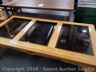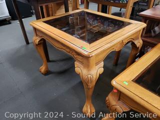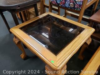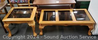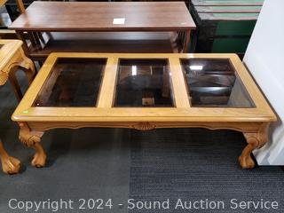 Lot #0033: Oak Claw Foot Tinted Glass Top Coffee & Side Table Set