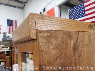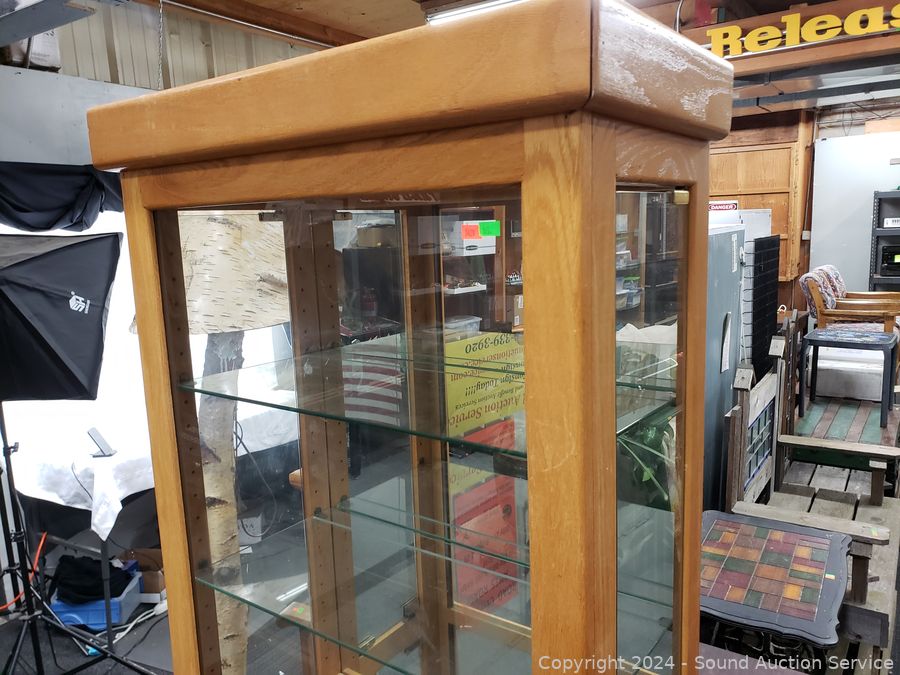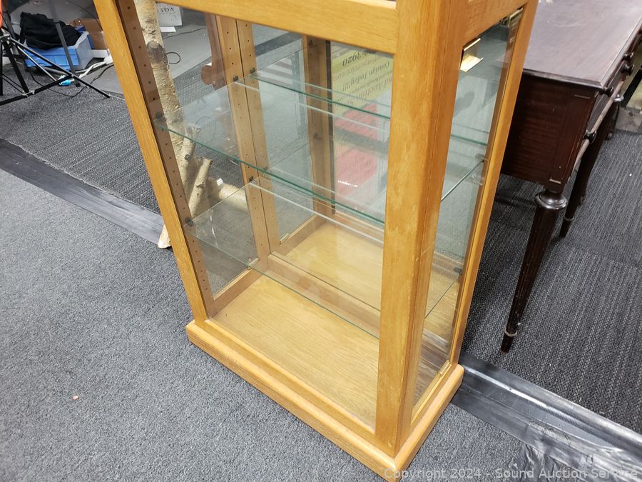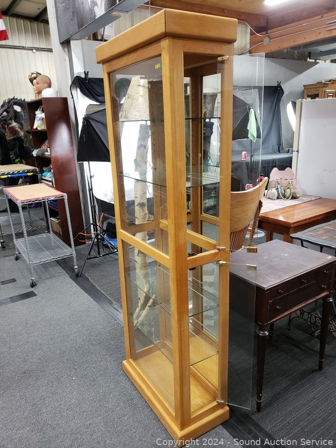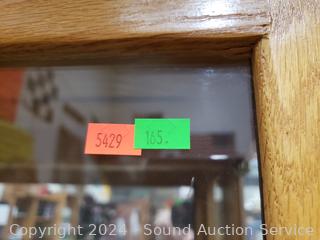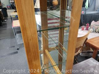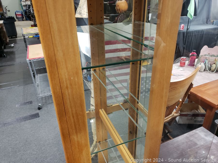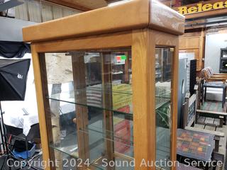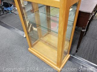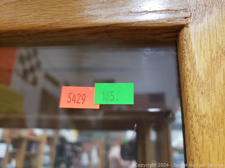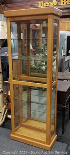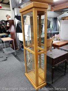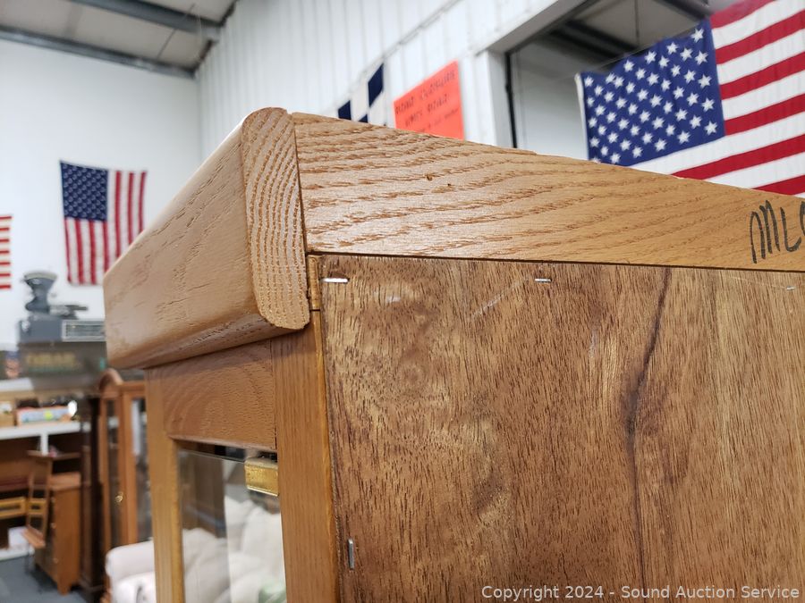 Lot #0165: Oak Mirrored Lighted Curio Cabinet