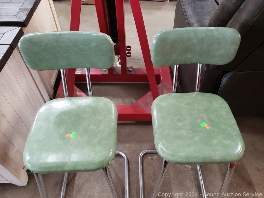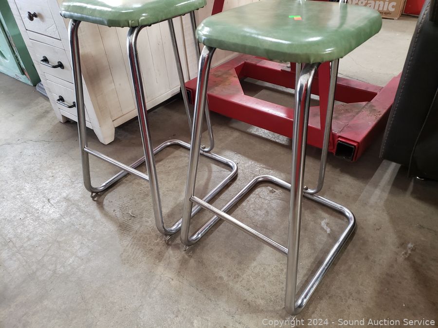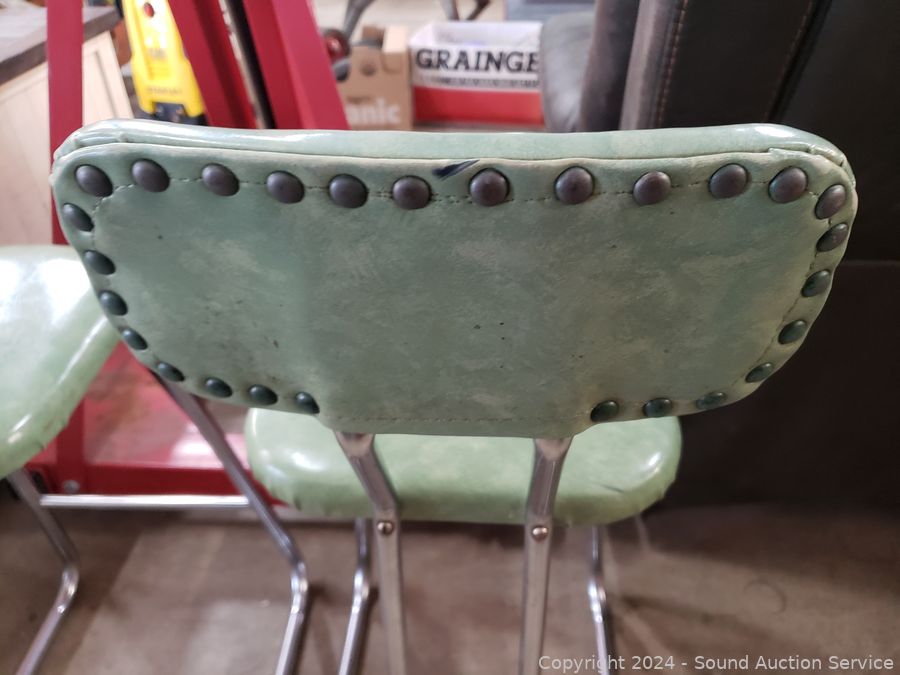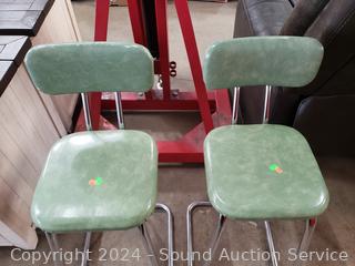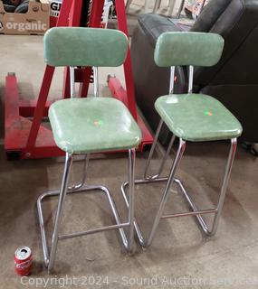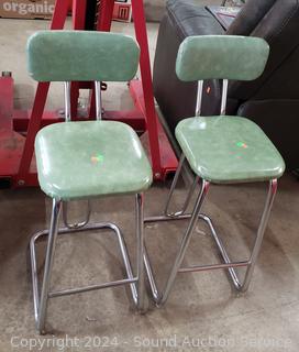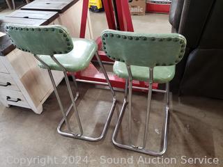 Lot #0015: 2 Chrome Finish Green Vinyl Stools