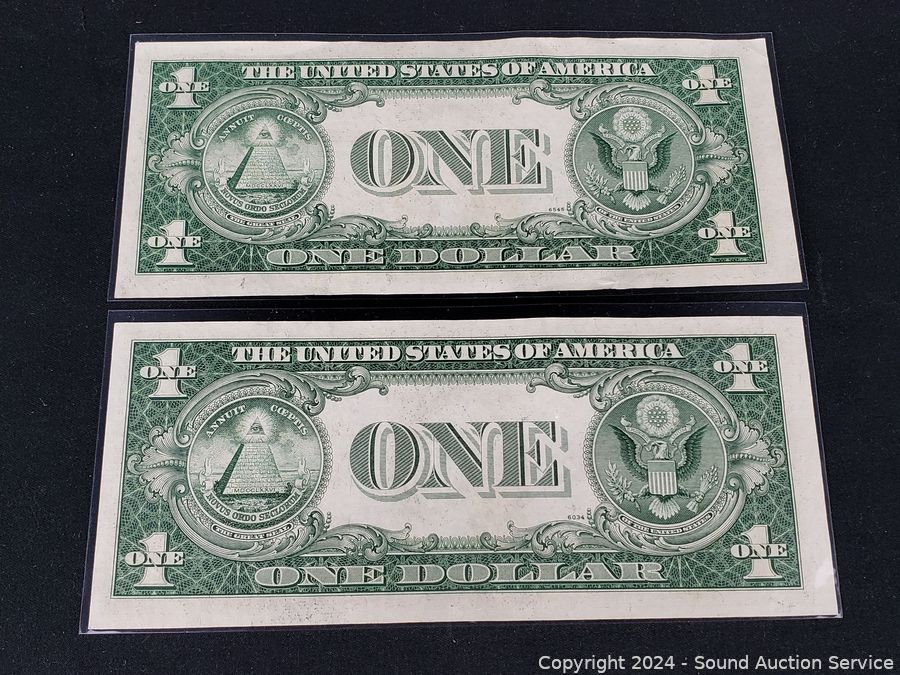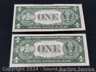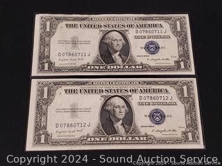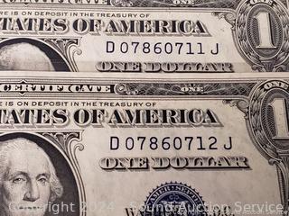Lot #0255: 2 Uncirculated 1935 Sequential Order $1 Silver Certificates