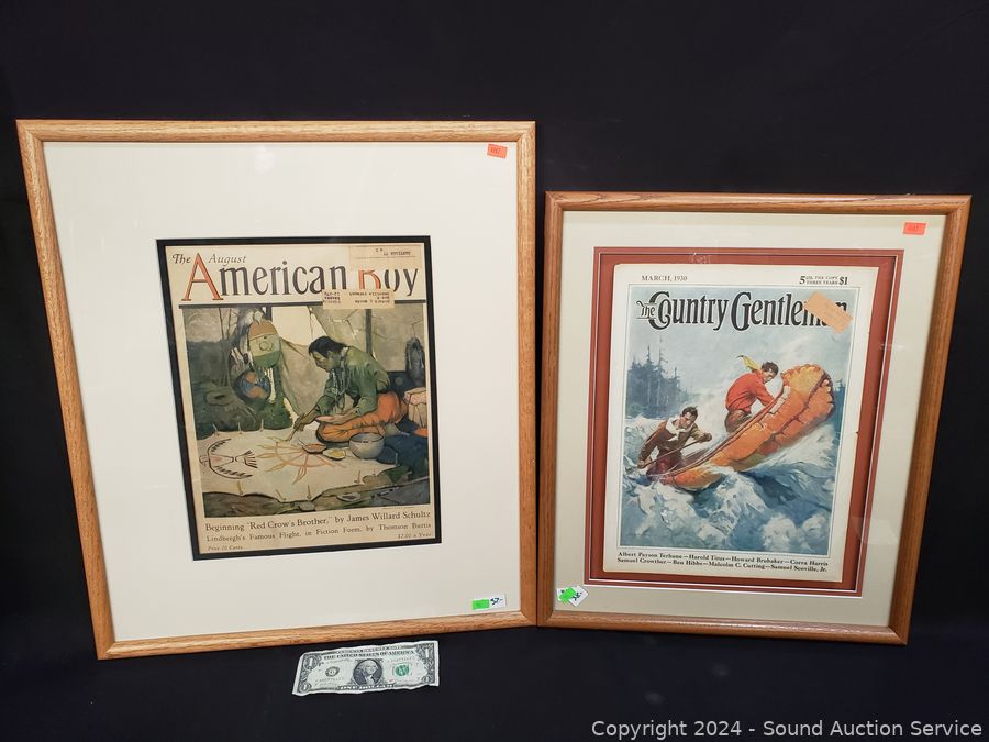 "The American Boy" & "The Country Gentlmen" March 1930. 19.5" x 16.5" & 22.5" x 19.5". oak framed, matted with glass.