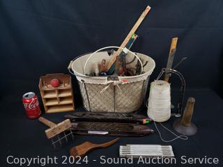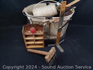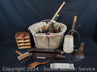 Lot #0173: Assorted Vintage Sewing, Loom, Knitting Supplies