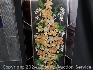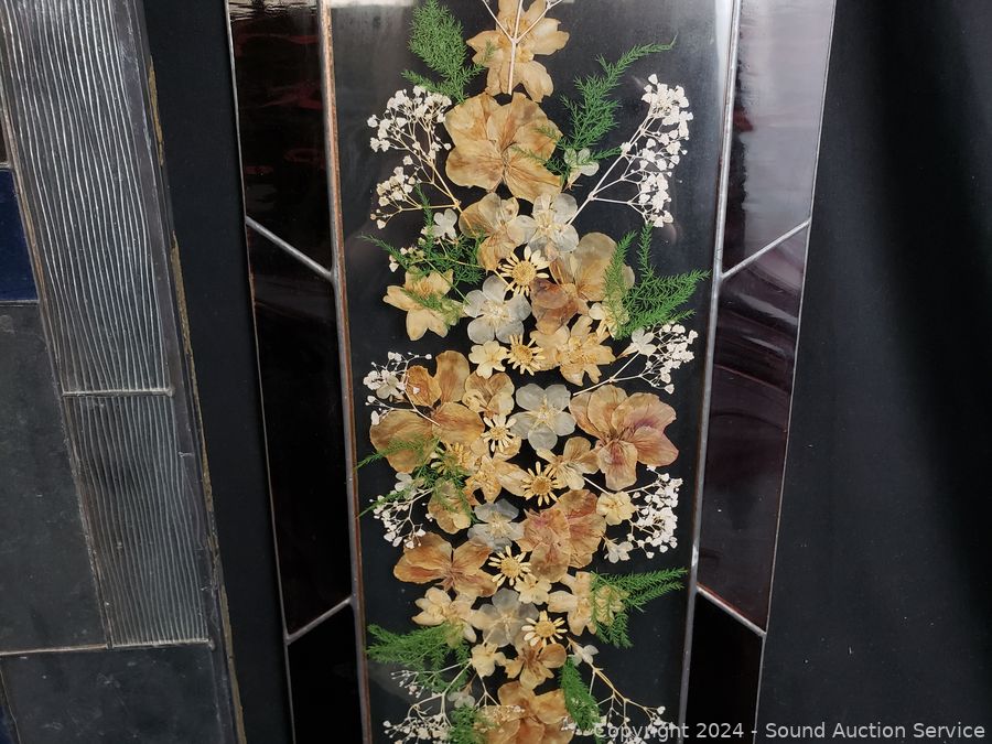 Larger piece has a cracked, missing piece of glass. Smaller one with reel pressed flowers.