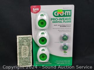 Lot #0218: 3 G.U.M. Pro-Weave Dental Floss w/2 Travel Size