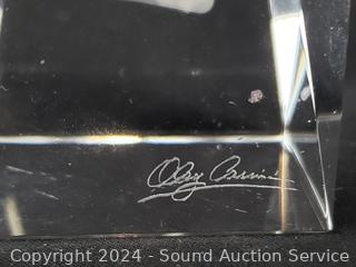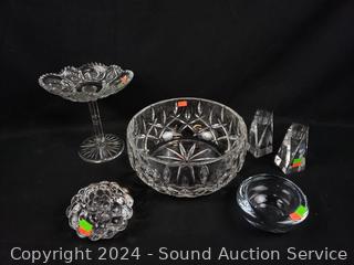 Signed Oleg Cassini Candleholder, Small Orrefors 4.5" bowl, Orrefors candleholder, Crystal 9.5" bowl, cut compote.