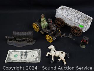 Lot #0142: Cast Iron Carriages Horse, Figures, Doorstop