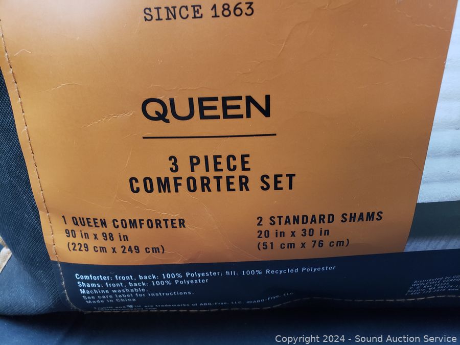 2 shams, 20" x 30", 1 comforter 90" x 98".