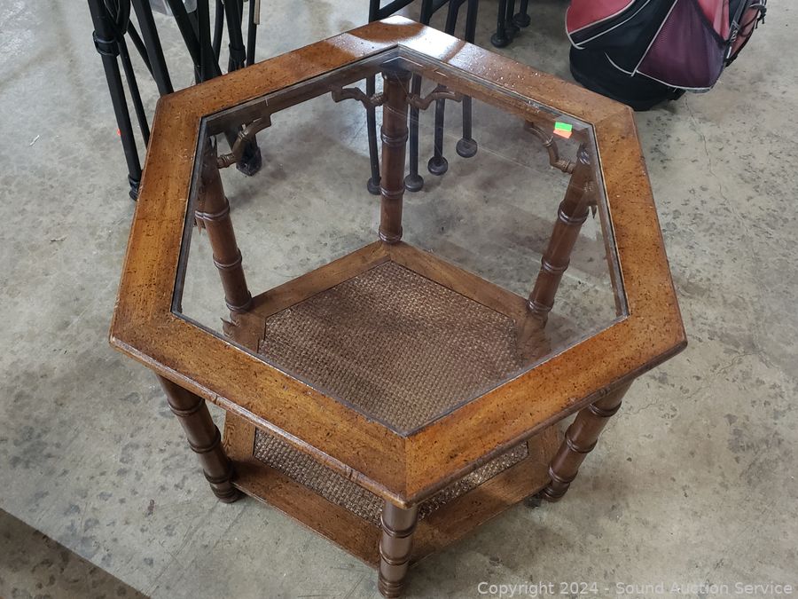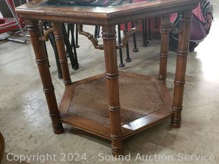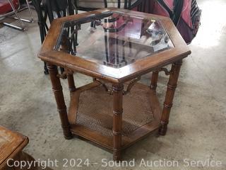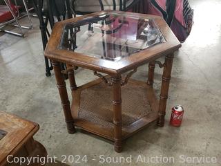 Lot #0028: Hexagon Beveled Glass Top Side Table
