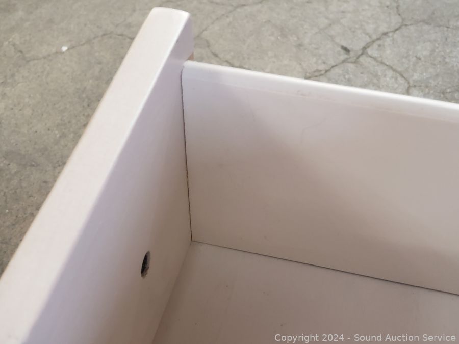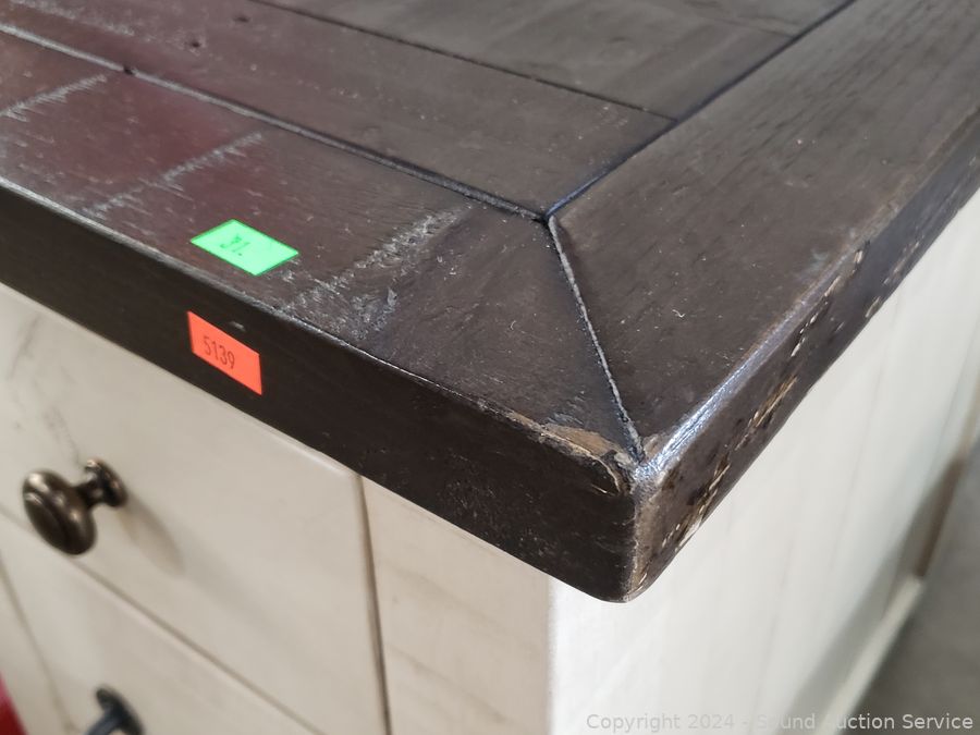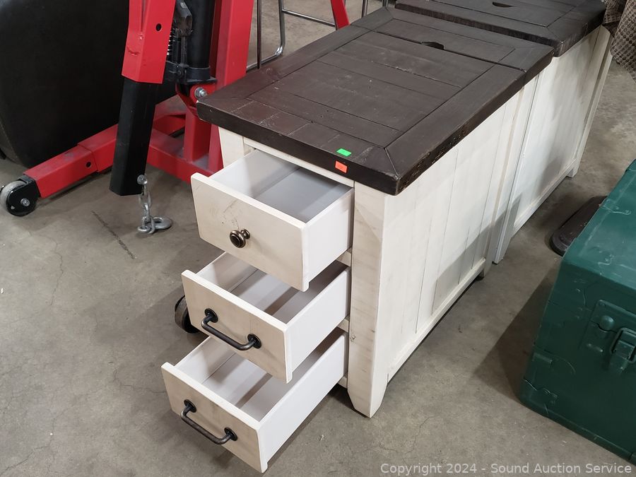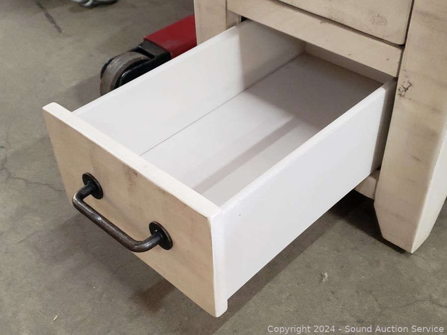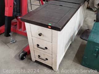 Lot #0031: Ivory Contrasting Dark Wood Powered 3-Drawer Side Table