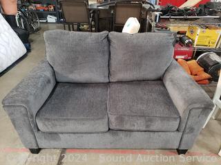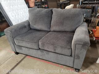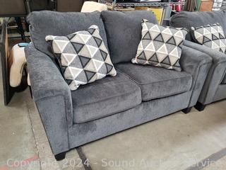 Lot #0004: Nice Ashley Furniture Gray Upholstered Loveseat w/2 Throw Pillows