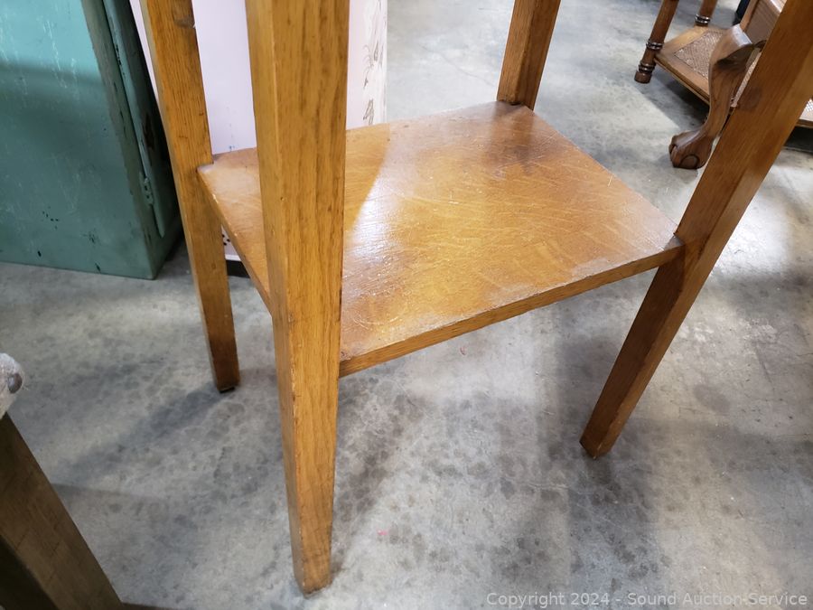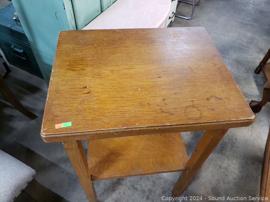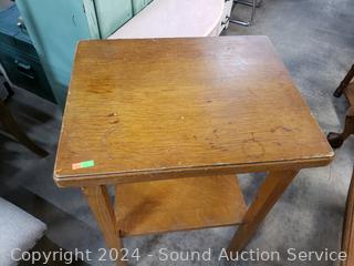 Lot #0263: Vintage 2-Tier Medium Finish Accent Table