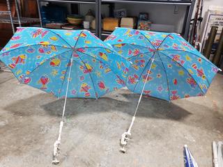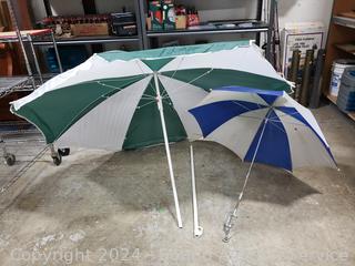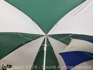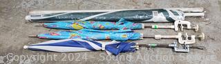 Lot #0197: 3 Chair/Table Mount Umbrellas & Beach Umbrella