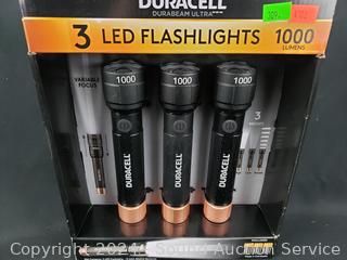 Lot #0309: 3 Duracell LED 1000LM Flashlights