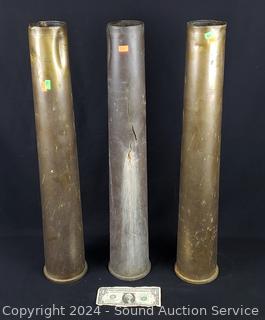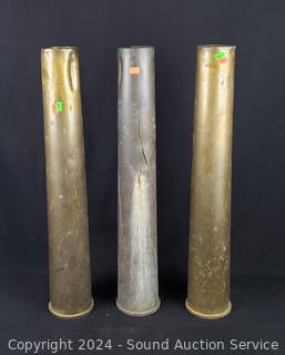 Lot #0121: 3 Large Brass 76MM 62-Cal Artillery Shells