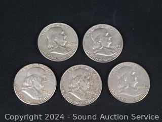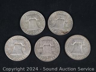 Lot #0108: (5) 1949-50 US Silver Franklin Half Dollars
