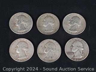 Lot #0090: (6) 1942-1957 Silver US Washington Quarters