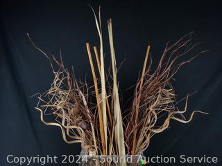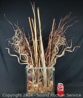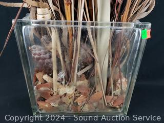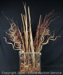 Lot #0323: Glass Cube Vase w/Reed Decor