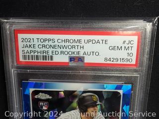 Lot #0080: Graded 2021 Topps Chrome Update Jake Cronenworth Sapphire ED Rookie Auto #JC Gem MT 10
