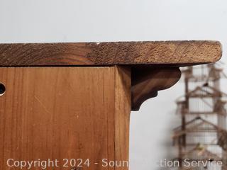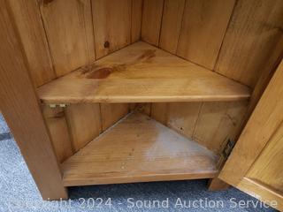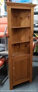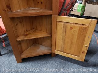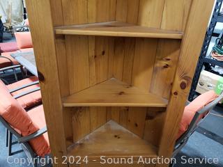 Lot #0025: Pine Wood Corner Cabinet Shelving Unit