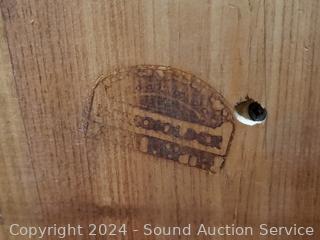 Has a burnt hall mark on the back, unable to make out. 69" H x 24" W x 17" D. In great condition.