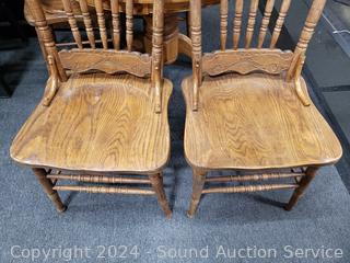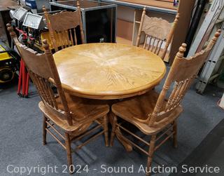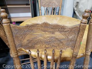 Lot #0033: Round Oak Dining Table w/4 Chairs