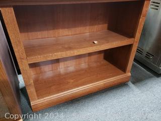 Lot #0022: Single Shelf Wood Grain Finish Bookcase