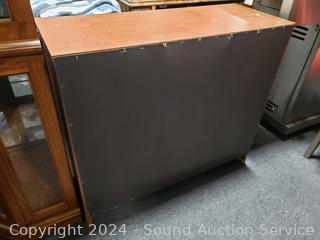 30.5" H x 35.5" W x 14" D. Has a large chip on back of unit, comes with the piece.