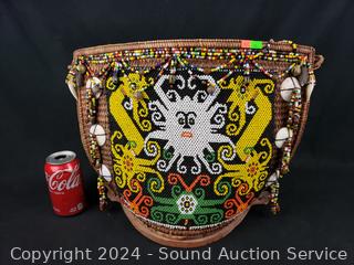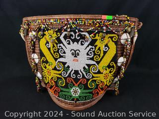 Lot #0046: Unique Native Hand-Woven Beaded Backpack Decor