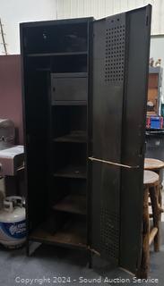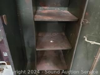 Various dents, rust, wear to finish. Door is not closing properly. Approx. 78" H x 24" W x 18" D.
