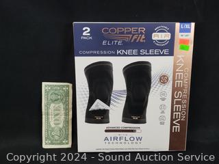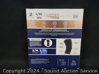 Lot #0200: 2 Copper Fit Elite Compression Knee Sleeves S:L/XL,16"-20"