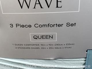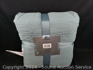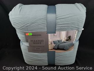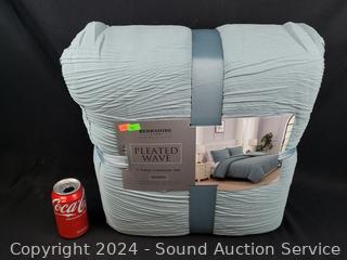 Lot #0259: Berkshire Life Pleated Weave Green 3pc Queen Comforter