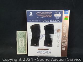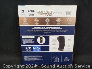 Lot #0172: 2pk Copper Fit Elite Compression Knee Sleeves S:L/XL,16"-20"