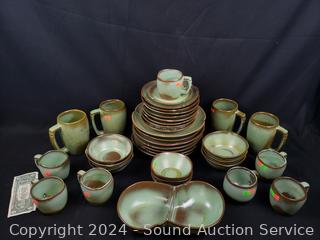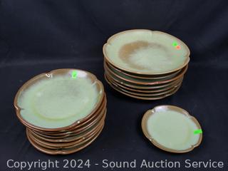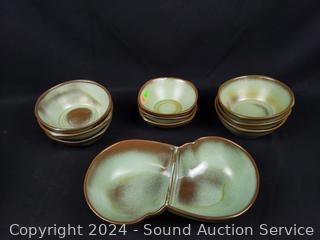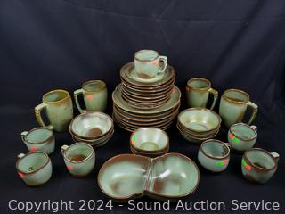 Lot #0171: 37pc Frankoma Green/Brown Pottery Dish Set