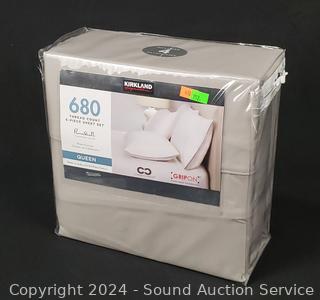 Lot #0252: 6pc Kirkland 680TC Queen Gray Cotton Sheet Set
