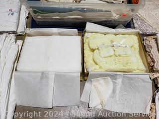 Lot #0202: Assorted Vintage Linens & Baby Clothes