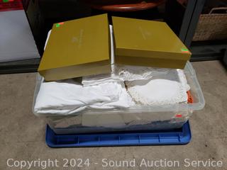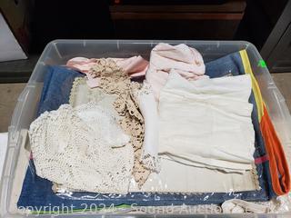 Refer to photos for lot contents. Tote w/Lid included, 6" H x 16.5" x 21".
