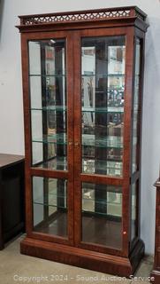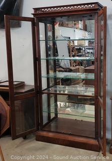 Lot #0003: Chinese Chippendale Style Mahogany Lighted Curio Cabinet