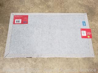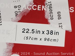Very light dirty spot on the white bottom middle of rug, don't see any other issues, still has original tag. 22.5" x 38".