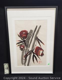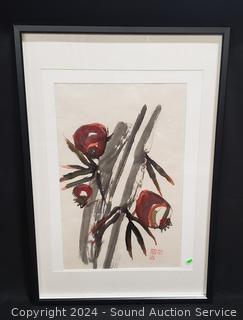 Lot #0046: Original Sandi Waldo Pomegranate Sumi Ink Art