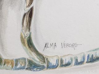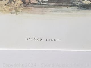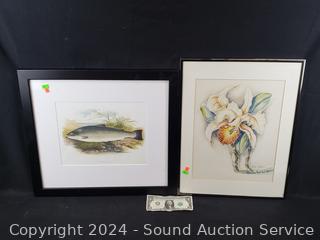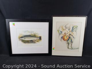 Lot #0035: Salmon Trout Print & Alma Veborg Original Floral Iris? Watercolor